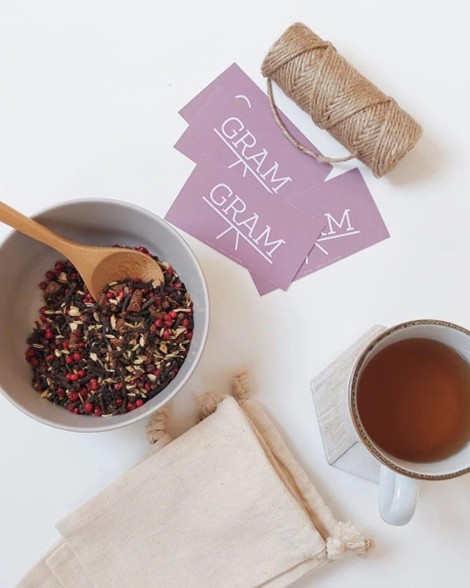 GRAM verkoopt losse thee gemaakt van uitsluitend pure ingrediënten. De losse thee wordt geproduceerd in een Nederlandse theemelangeerderij, waar wordt gewerkt met onbewerkte ingrediënten van de allerhoogste kwaliteit. Er ontstaat een sensationele thee, waardoor theedrinken een beleving wordt.