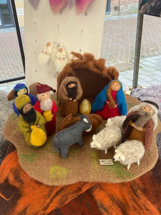 Sinds 2007 importeert Mooi Vilt producten vanuit Nepal. 1 keer per jaar reist Hilda af naar Nepalese bedrijven van Shanti Shrestha en Nirjala Shrestha, twee plezierige en energieke werkomgevingen voor 60 tot 100 vrouwen. De principes van het Fairtrade handelen hebben zij hoog in het vaandel staan, en dat is voelbaar op de locaties. In de ateliers maken ze mooie vilt producten van 100% wol, van sjaals tot kraamcadeaus maar ook deze geweldige kerststal Facebook: Mooi Vilt